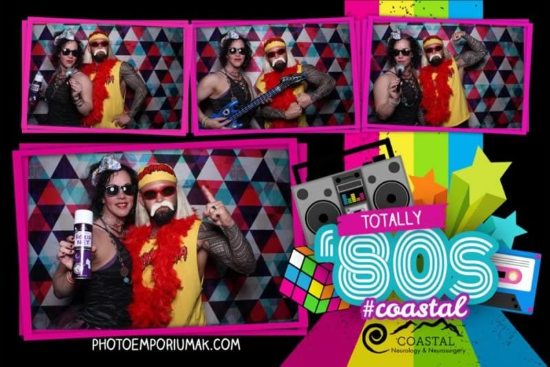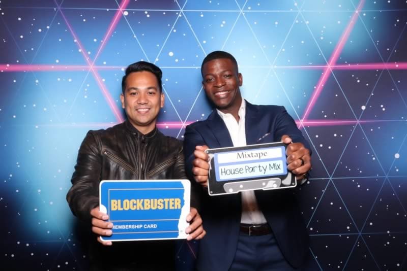 Let's go old-school with this ’80s-themed photo booth. Complete with a boom box, Rubik’s Cubes, and Hulk Hogan actor.